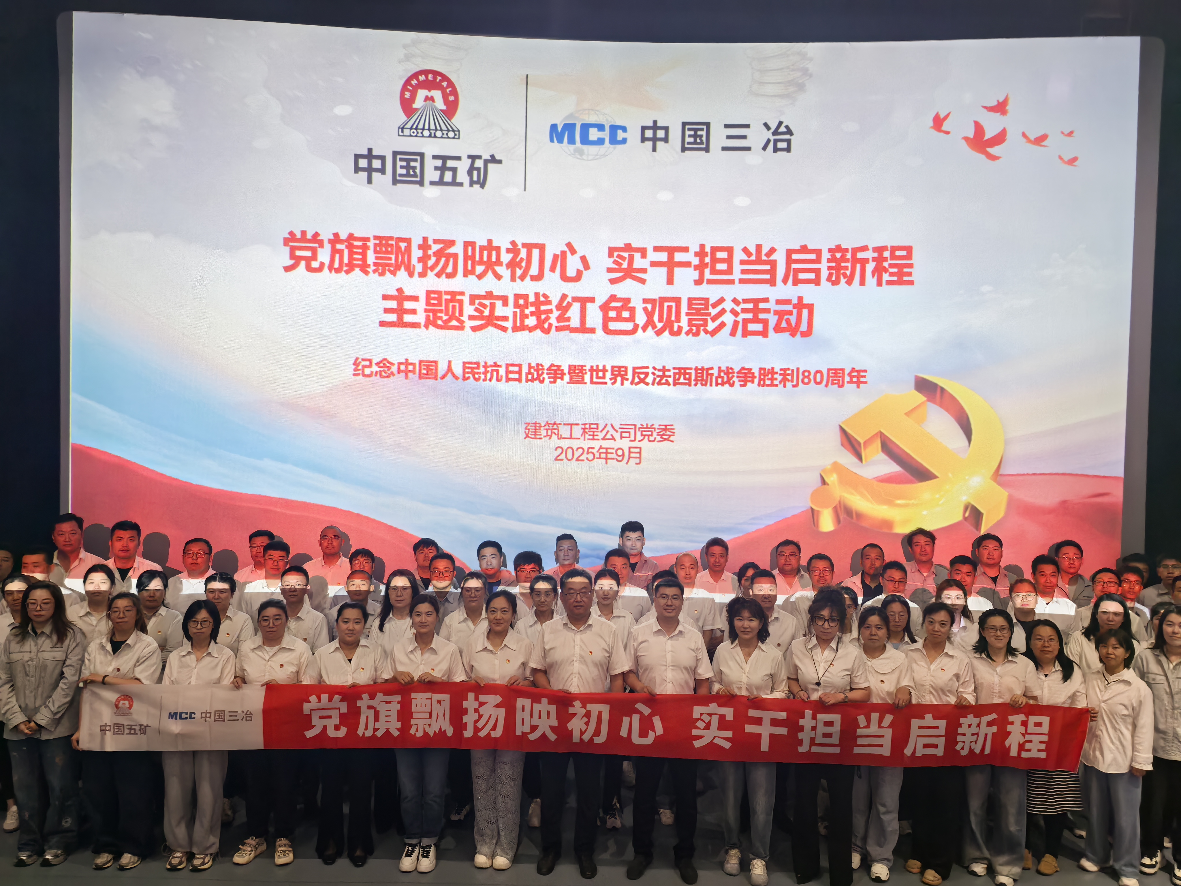 為紀念中國人民抗日戰爭暨世界反法西斯戰爭勝利80周年,919日,建筑工程公司黨委開展“黨旗飄揚映初心 實干擔當啟新程”主題實踐紅色觀影活動,組織全體在鞍黨員、團員走進影院,一起觀看電影《731》。